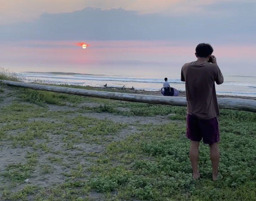 この時点で自分たち3人の以外に10人以上の人が海にいた。平日にも関わらず多くの人が早朝からサーフィンをしていて、宮崎に根付いているサーファー文化に驚かされた。仕事前と後に好きな遊びをできるって最高だ。