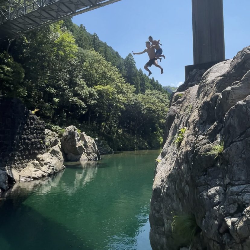 今回立ち寄った場所はものすごく綺麗な川で、魚を釣る前に遊ぶことにした。